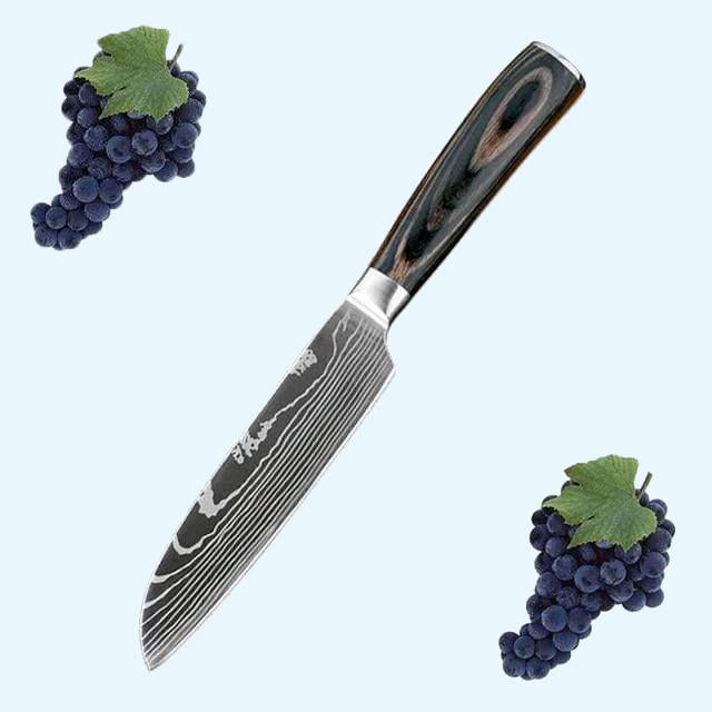 Available Knife & Sizes: 8" Chef knife, 8" Bread Knife, 8" Slicing Knife, 7" Cleaver Knife, 7" Santoku knife, 6" Boning Knife, 5" Santoku knife, 3.5" Paring Knife.