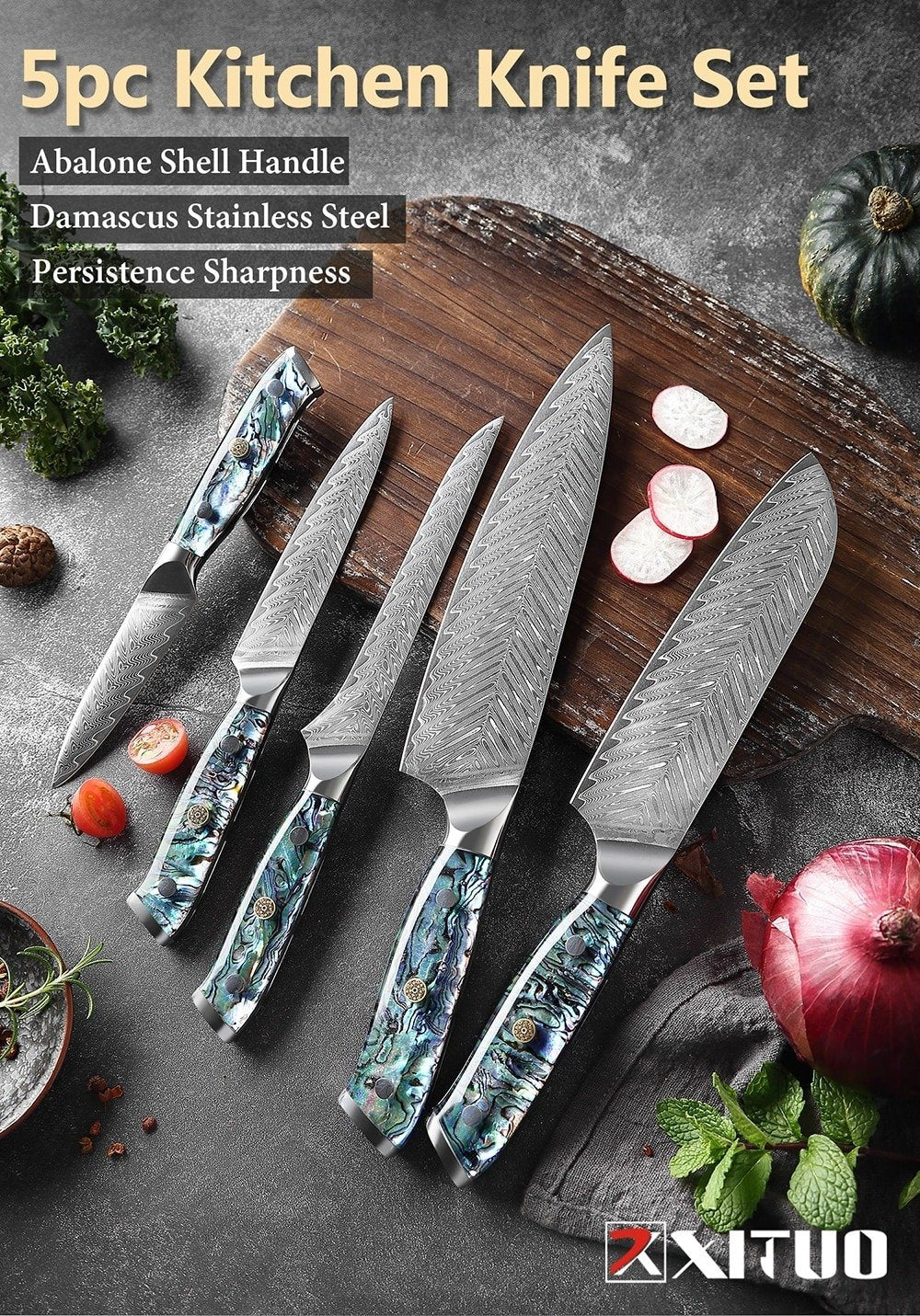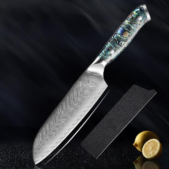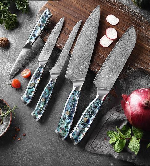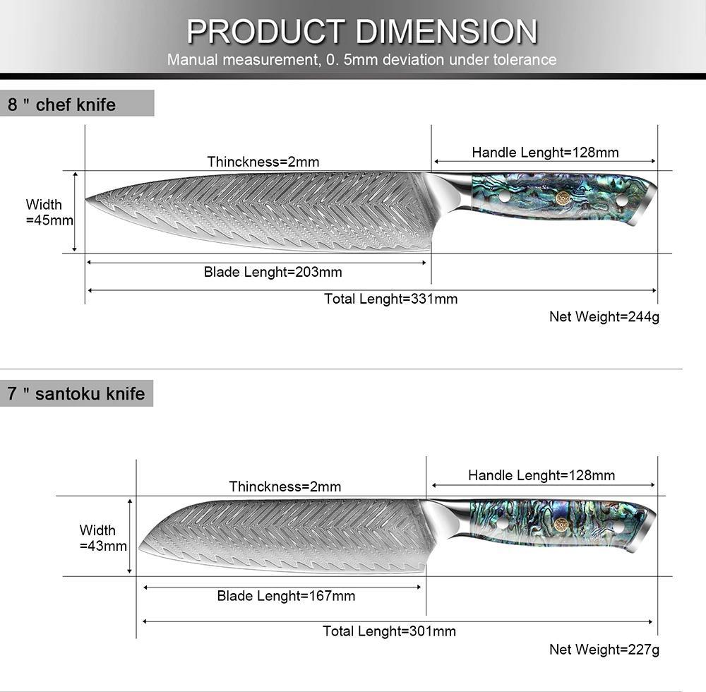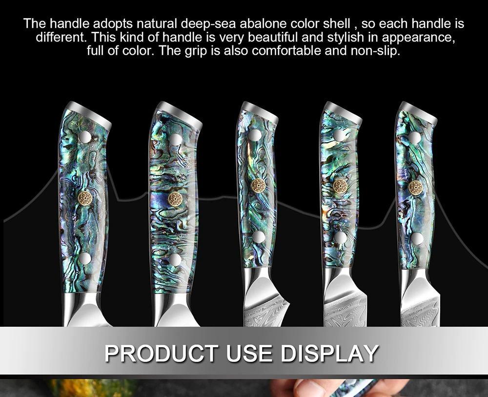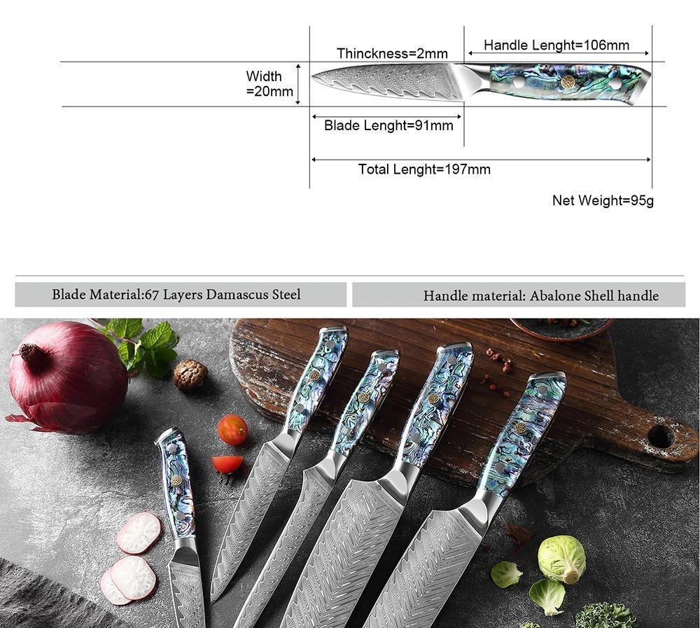 - The blade is made of 67-layer Damascus Steel imported from Japan and its handle material is Abalone Shell.