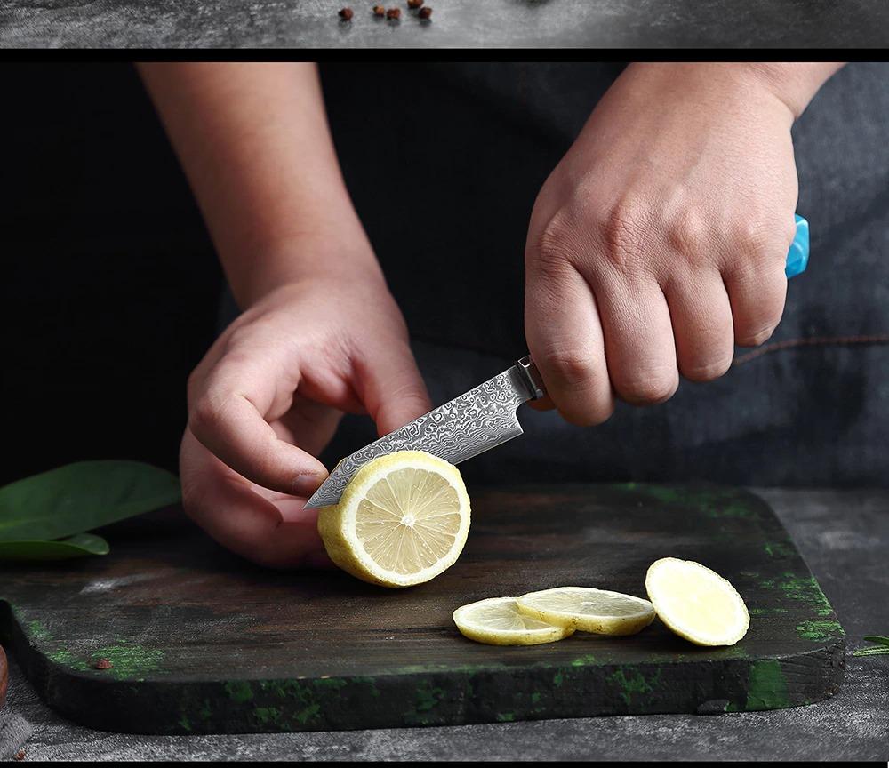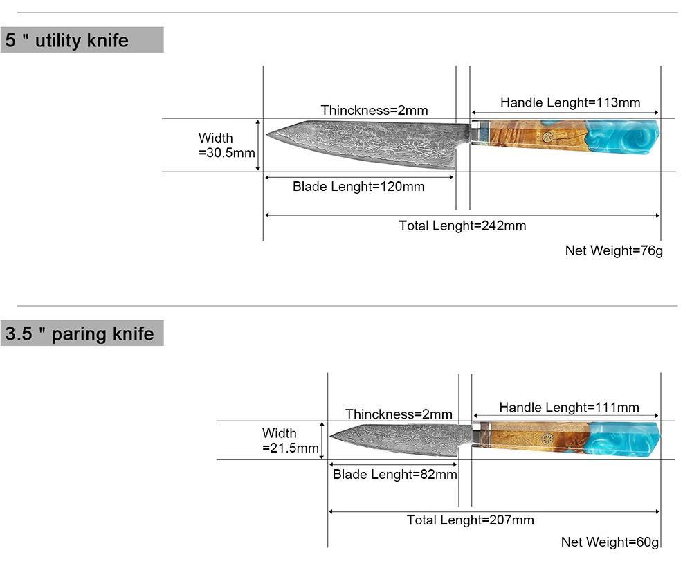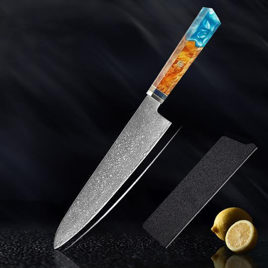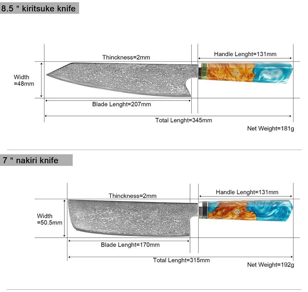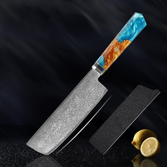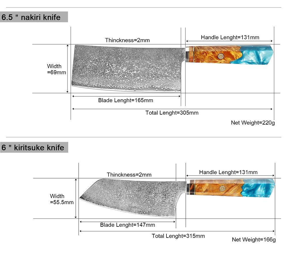- Material : 67 layers of Damascus steel and first-class high-end touch. Damascus is naturally patterned, with amazing design and absolutely great materials to complete the kitchen task easily.