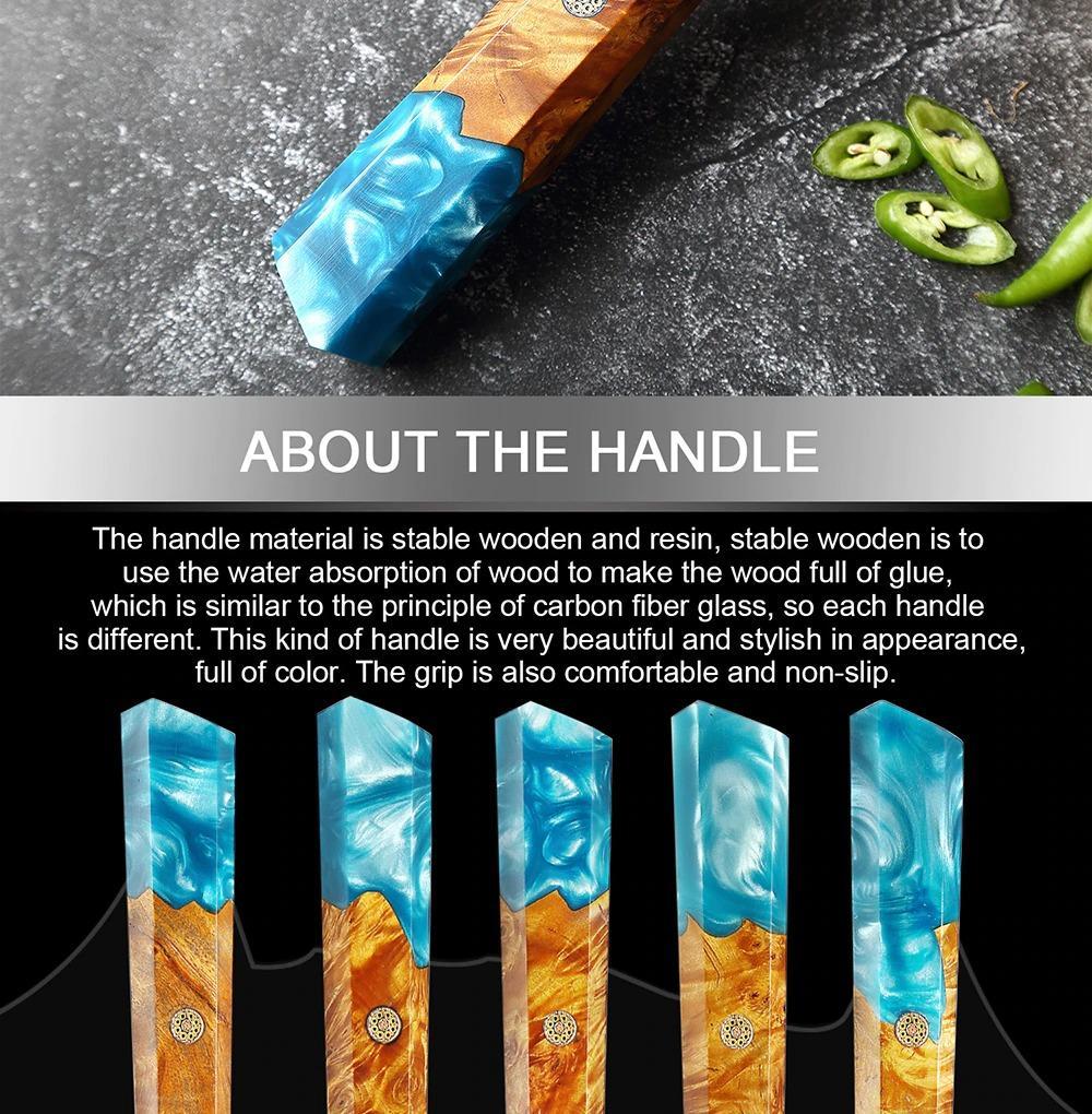 - Handle : Fashionable and sophisticated, imported resin, strictly selected color wood, it is decorated with double copper rings that will not rust. It is particularly noble and comfortable to hold. Ergonomic design combined with modern art, chic and delightful.