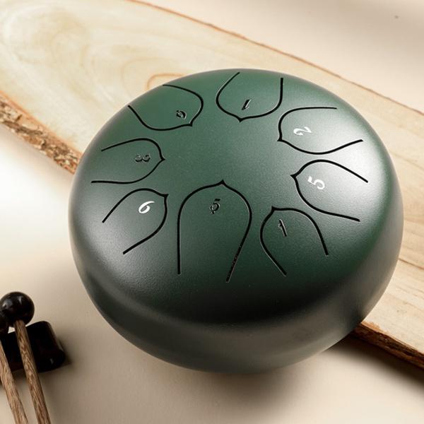 Perfect tuning: Precision cut with lasers for perfect tuning, which have a range of sound and can be played with mallets or with your fingers. This small steel drum can produce a beautiful sound. The sound will flow through your ear into your heart and make you calm and relax.